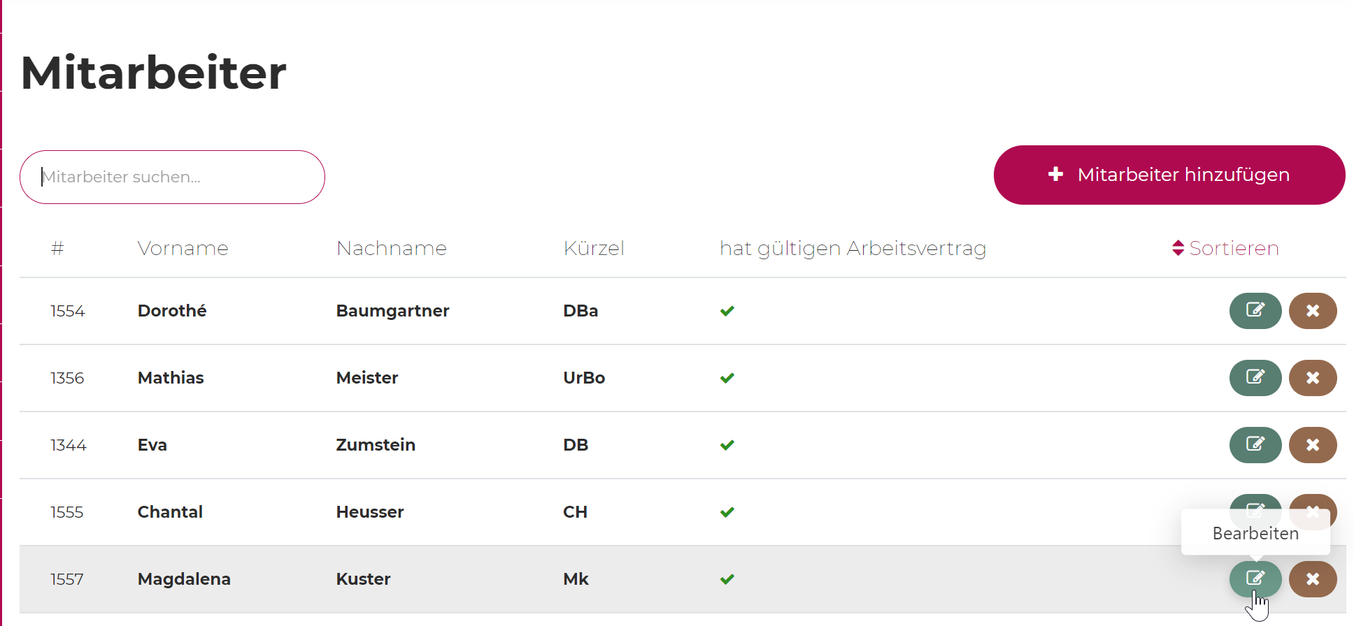 Pour cela, il faut sélectionner le collaborateur et appuyer sur modifier.