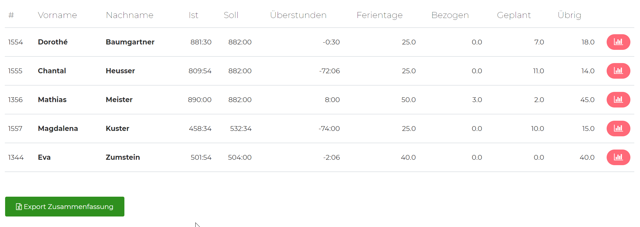 Diese Daten könn als Excel heruntergeladen werden und bei Bedarf mit den Lohnkosten erweiteert werden. So haben Sie mit sehr wenigem Aufwand den Personalaufwand perfekt abgegrenzt.