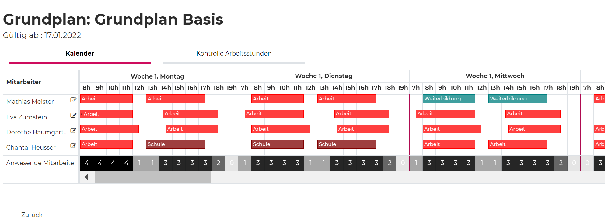 Après avoir créé un nouveau plan de base, insérez les affectations du plan de vos collaborateurs conformément à leur contrat de travail.