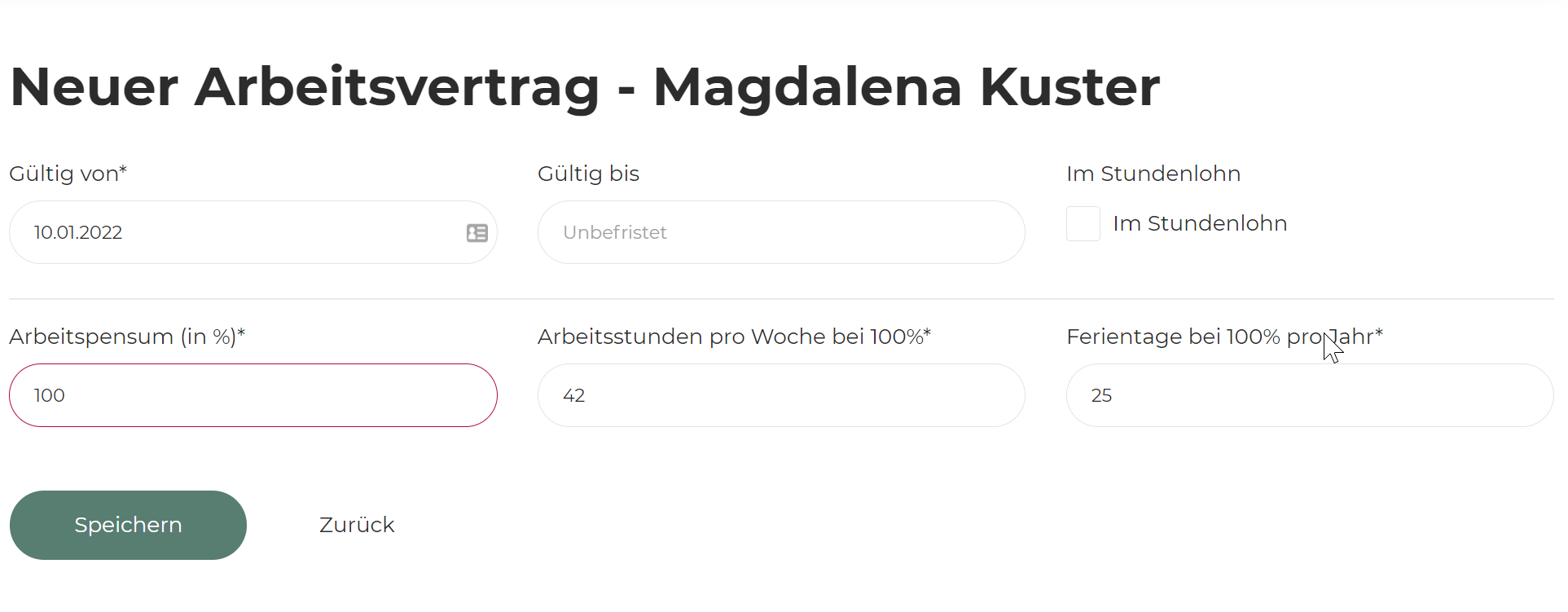 Für den Arbeitsvertrag werden die Grundeinstellungen übernommen, welche aber selbstverständlich überschrieben werden können.