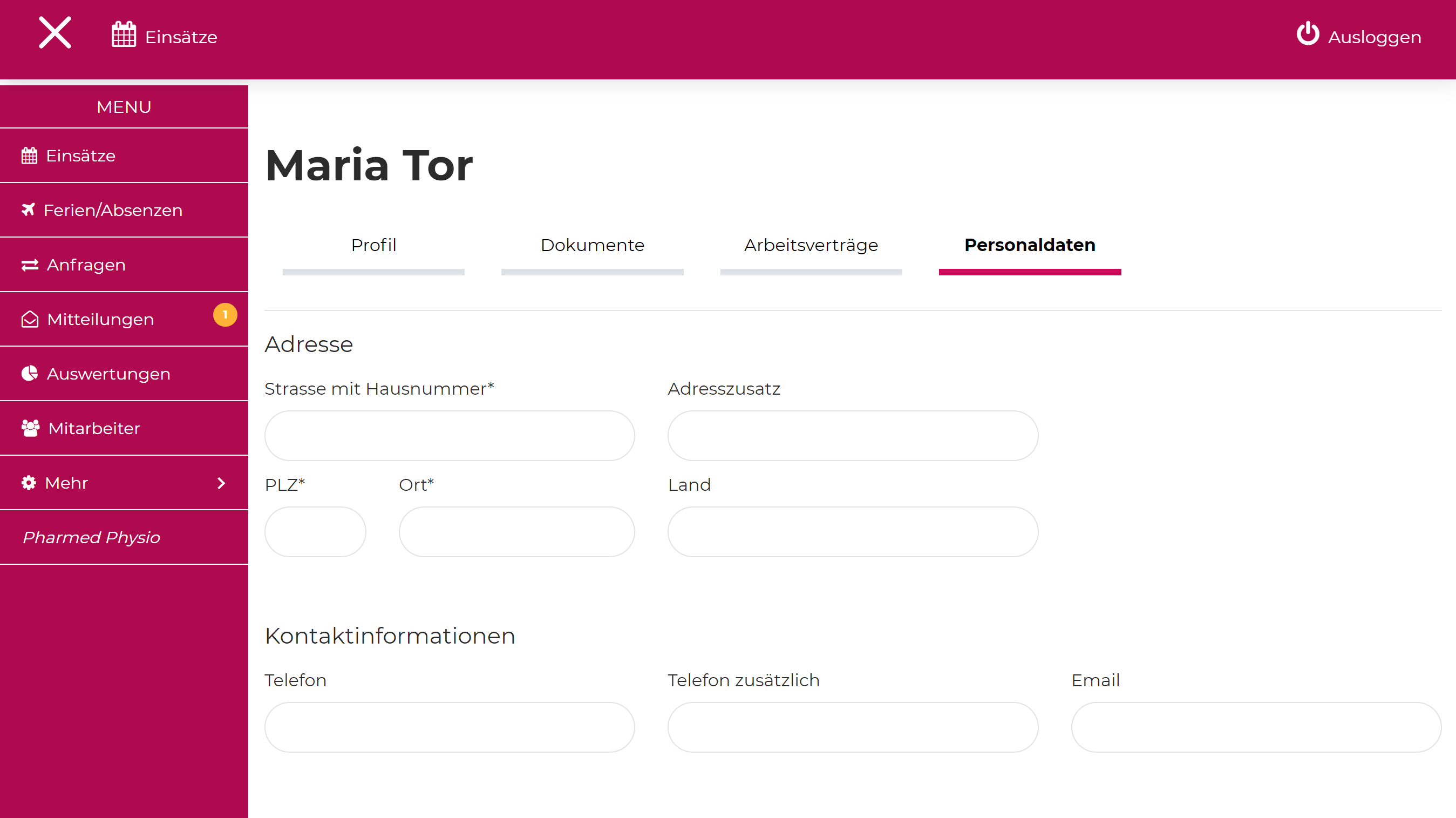 • Adresse des Mitarbeiters