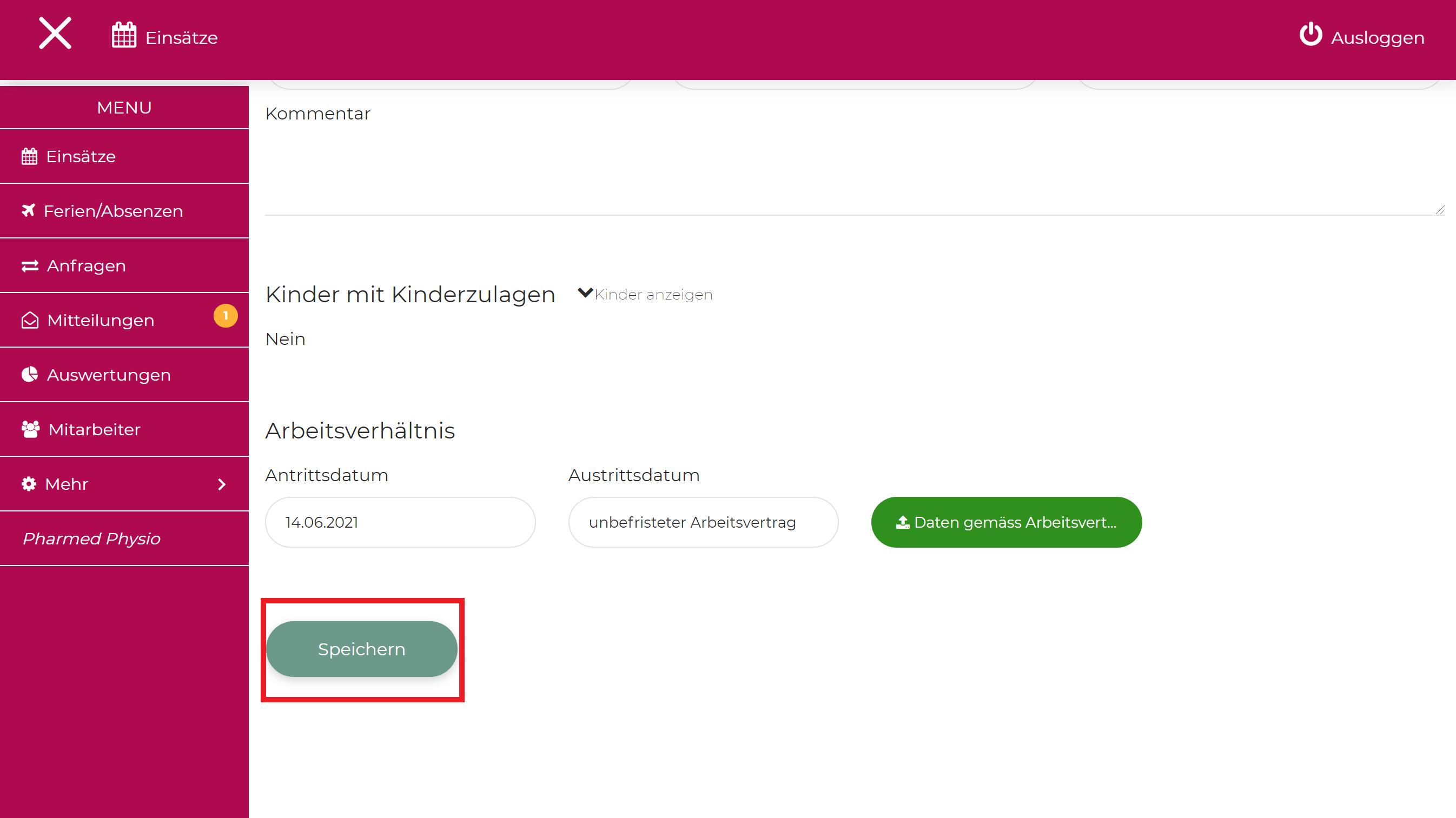 Unter der Rubrik Mitarbeiter können neue Mitabeitende erfasst werden.